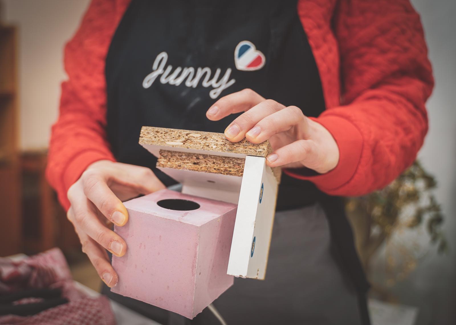 C'est Justine, la créatrice et fondatrice de la marque Junny qui confection les lampes et objets décoratifs en béton. Grâce à un savoir-faire artisanal transmis par son père, Justine réalise à la main l'ensemble de vos commandes.